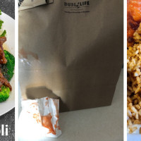 Shrimp paired with chicken in a garlic sauce. Spice level options. Choice of rice or lo mein with various mix-ins.