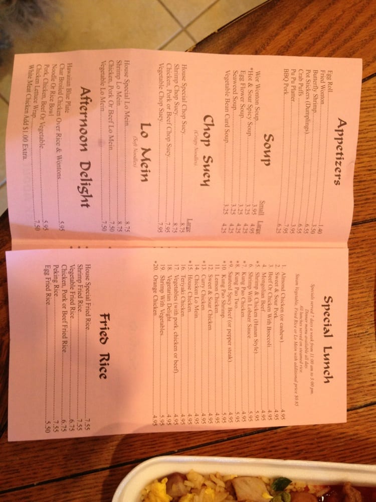 Sliced chicken, mushrooms, and mixed veggies. Choice of rice or lo mein, options include vegetable, chicken, pork, shrimp, beef, or house special.