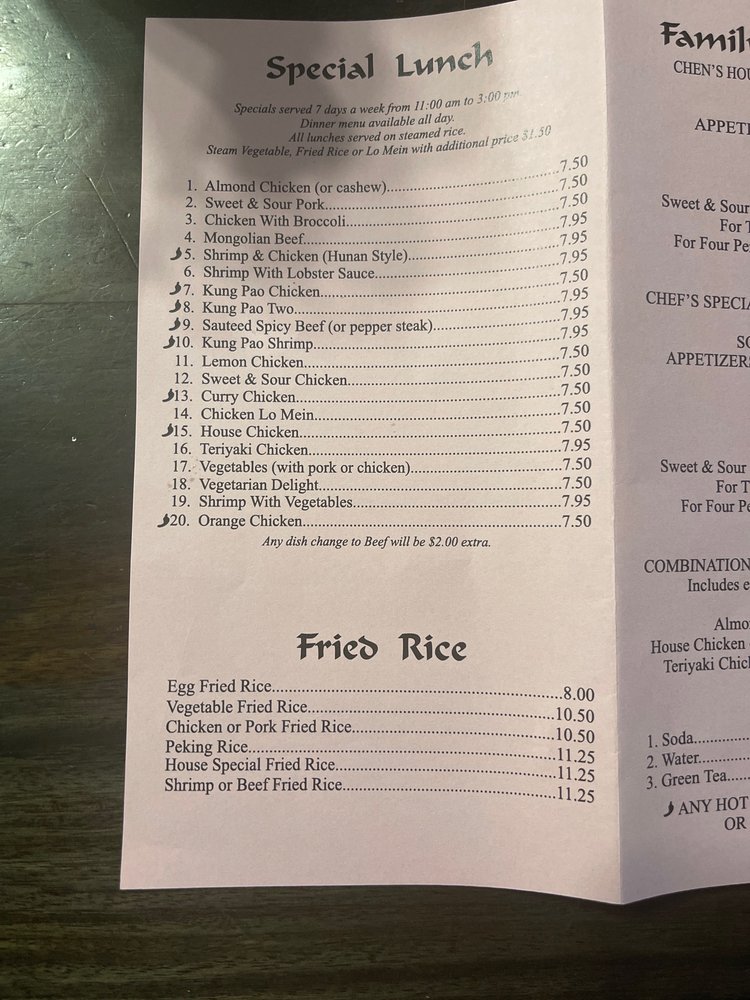 House Special Chicken (Combo) - carefully selected mix of preparation options, ranging from a variety of fried rice to lo mein, including vegetable, chicken, pork, shrimp, beef, or house specials. Choose your spice level: not spicy, little spicy, or spicy.