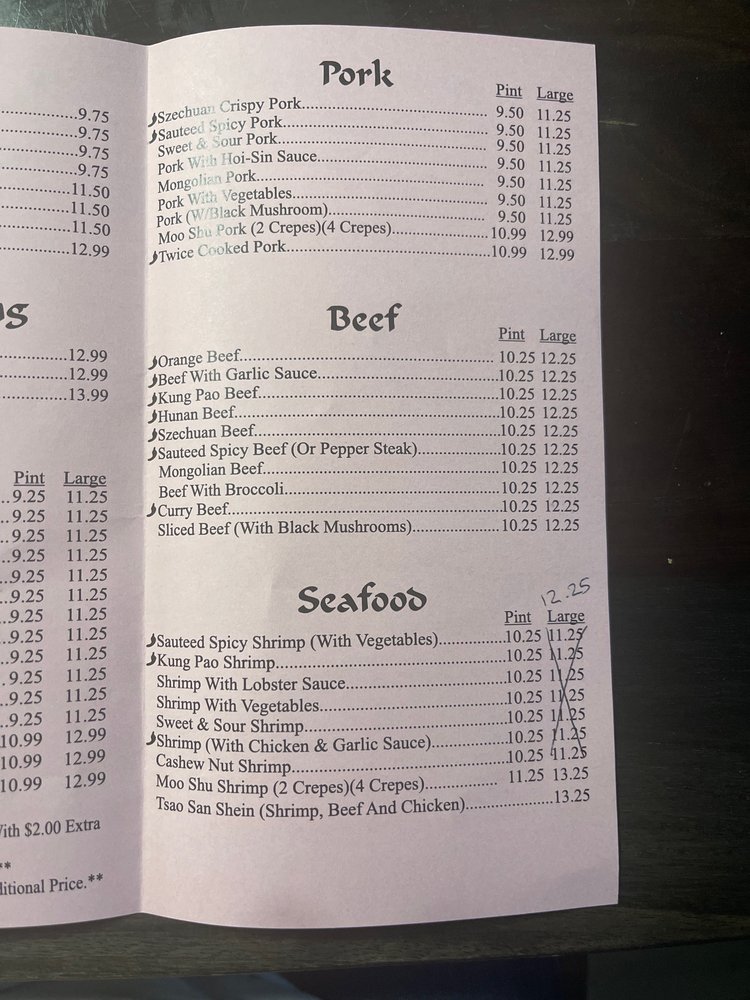 Shrimp paired with mixed vegetables, served in a pint size. Choice of rice or lo mein, including house specials and various meat options.